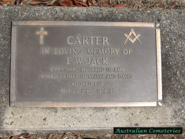 | CARTER | E.W. Jack | photo | 31/1/1905 | 15/6/1986 | Amy F.M. | father to Sylvia & David | |||