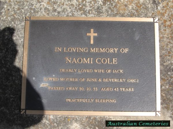 | COLE | Naomi | photo | 30/10/1953 | 43 | Jack | par Albert & Jane Hollier,mother to Beverley & June | |||