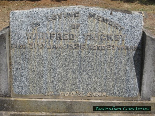 | TRICKEY | Winifred | photo | 31/1/1926 | 23 | par Albert W & Lucy Helen Bellmaine. | ||||