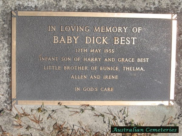 | BEST | Dick | photo | 17/5/1935 | Infant | par Harry & Grace,bro to Eunice,Thelma,Allen & Irene | ||||