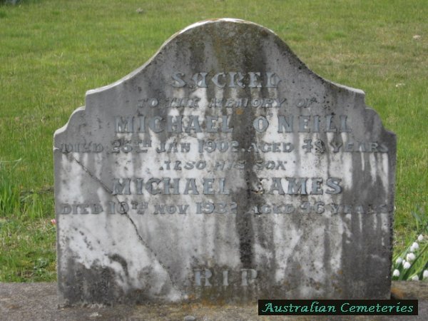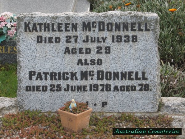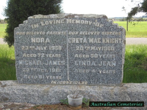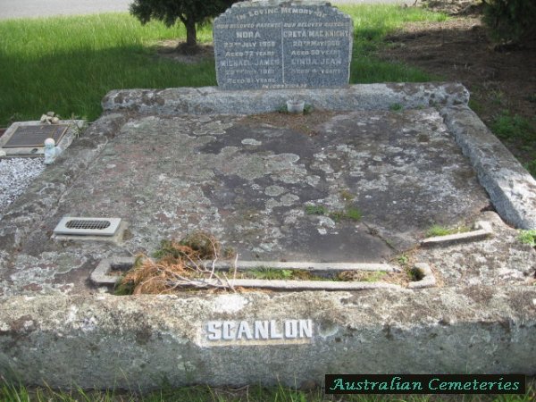 | SCANLON | Michael James | photo | photo | 29/10/1961 | 81 | Nora | buried with daughter Greta Mae Knight | ||