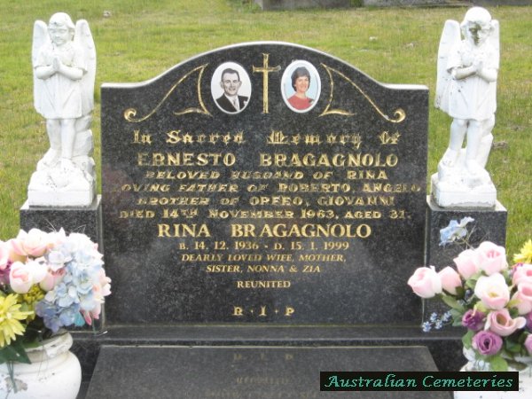 | BRAGAGNOLO | Rina | photo | photo | 14/12/1936 | 15/1/1999 | m/o Roberto & Angelo,sis to Nonna & Zia | |||