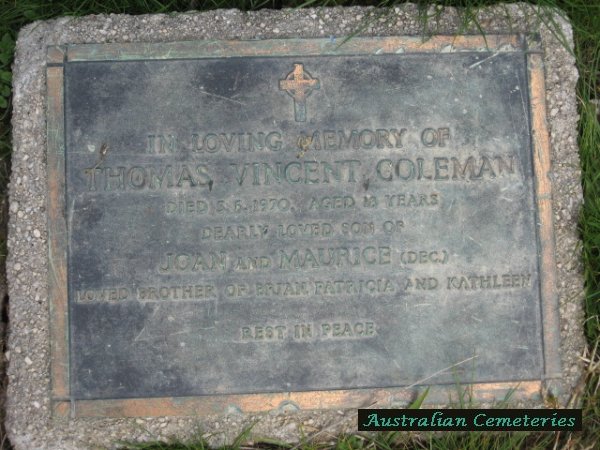 | COLEMAN | Thomas Vincent | photo | 5/6/1970 | 18 | buried near par Maurice V & Joan S. | ||||