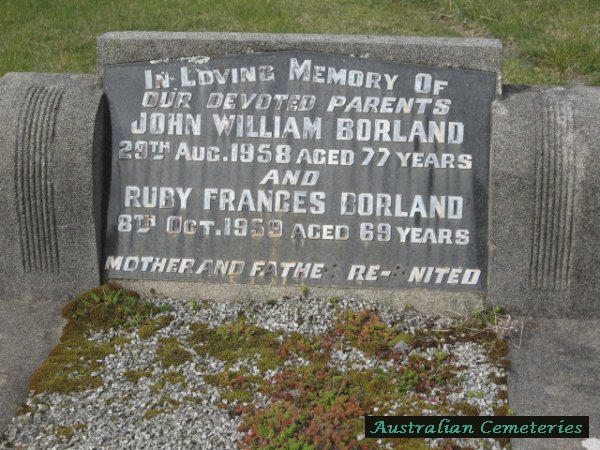 | BORLAND | John William | photo | 29/8/1958 | 77 | Ruby F | par John W & Isabel. | |||