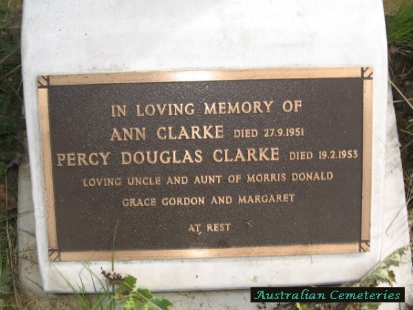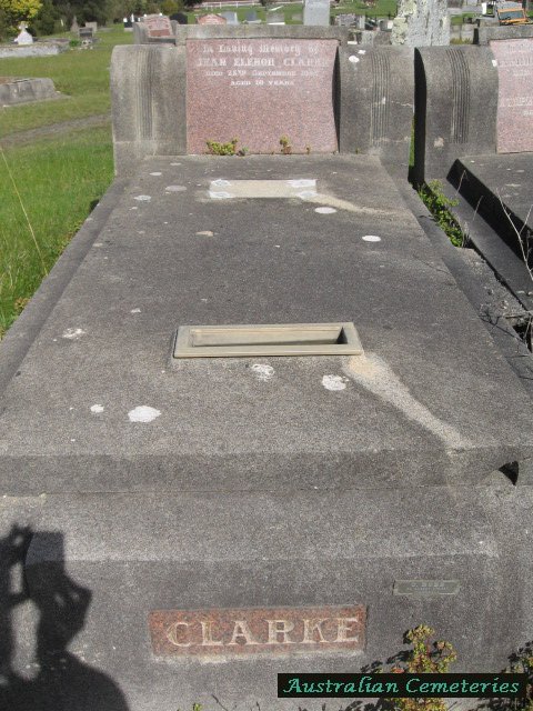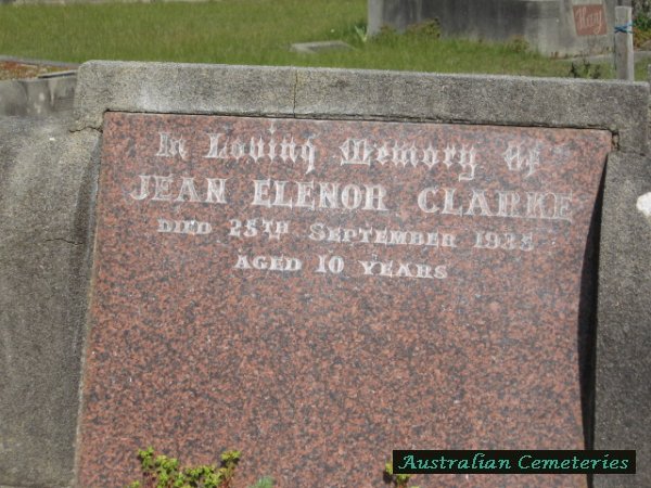 | CLARKE | Jean Elenor | photo | photo | 25/9/1935 | 10 | buried next to par Harriet E & Stephen R Clarke | |||