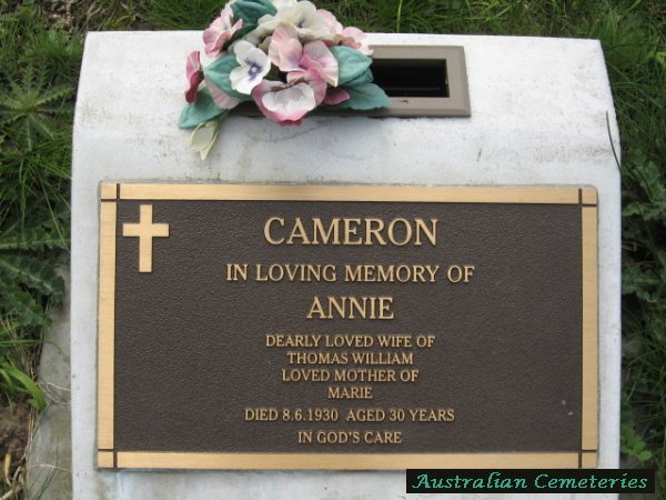 | CAMERON | Annie | photo | 8/6/1930 | 30 | Thomas William | m/o Marie | |||