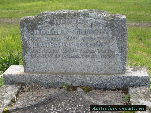 | TRICKEY | Barbara | photo | 24/8/1942 | 76 | Robert | par Robert & Sarah Linklater | |||