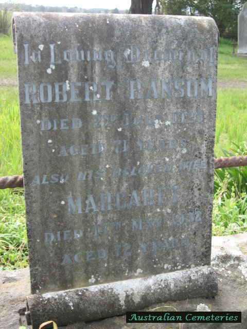 | RANSOM | Margaret | photo | photo | 13/5/1932 | 72 | Robert | par George & Mary Oakley | ||
