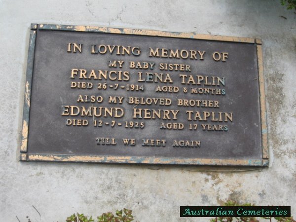 | TAPLIN | Francis Lena | photo | 26/7/1914 | 8m | par Albert Edward & Sarah Ann | ||||