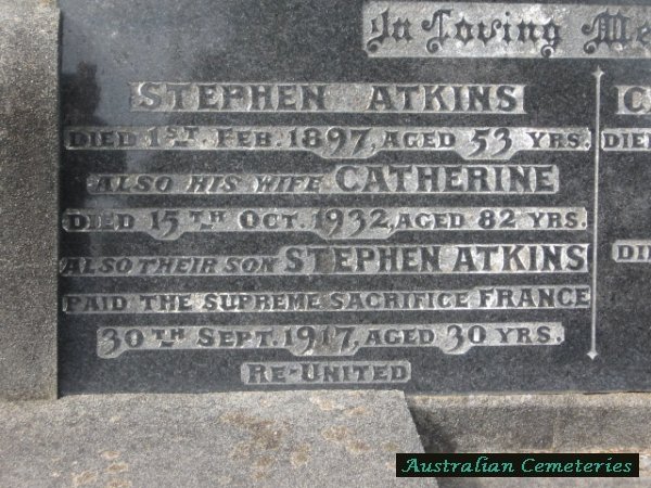 | ATKINS | Stephen | photo | photo | 30/9/1917 | 30 | par Stephen & Catherine,died France | |||
