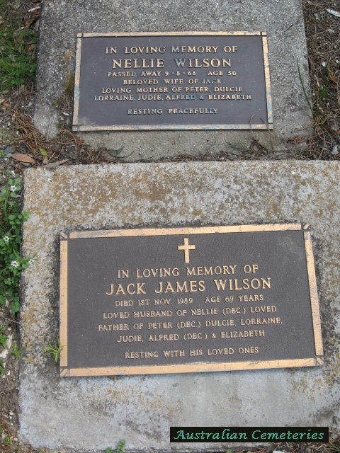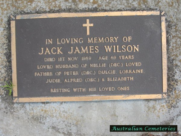 | WILSON | Jack James | photo | photo | 1/11/1989 | 69 | Nellie (dec) | f/o Peter (dec),Dulcie,Lorraine,Judie,Alfred (dec) & Elizabeth | ||