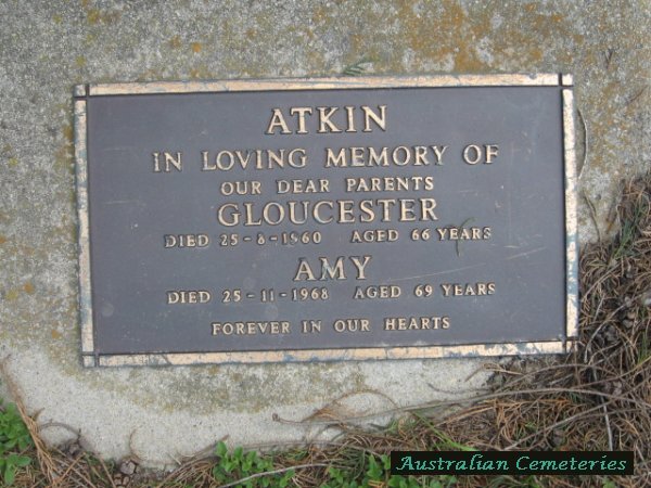 | ATKIN | Gloucester | photo | 25/8/1960 | 66 | Amy | par William H & Lydia Anne | |||