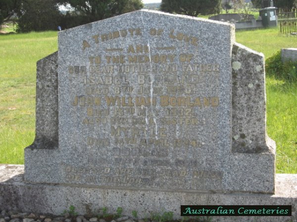 | BORLAND | Myrtle (Isabel Waratha) | photo | photo | 14/4/1924 | 43 | buried with par Isabel & John W Borland | |||