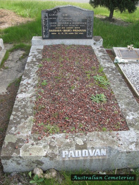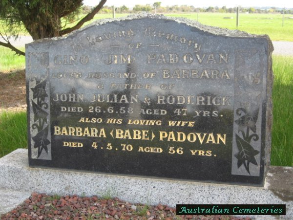 | PADOVAN | Gino (Jim) | photo | photo | 26/6/1958 | 47 | Barbara | f/o John,Julian & Rodrick | ||