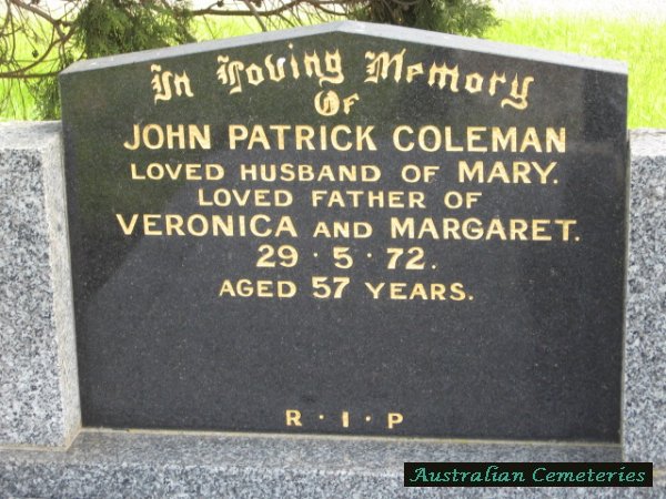 | COLEMAN | John Patrick | photo | 29/5/1972 | 57 | f/o Veronica & Margaret | ||||