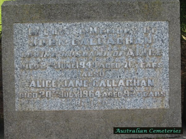 | CALLAGHAN | Alice Jane | photo | photo | 20/7/1964 | 92 | John | |||