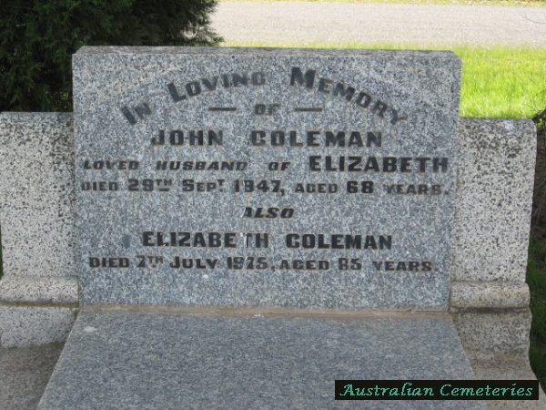 | COLEMAN | John | photo | 29/9/1947 | 68 | Elizabeth | ||||