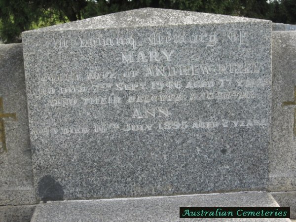 | RIZZI | Mary | photo | photo | 7/9/1946 | 77 | Andrew | par Patrick & Ann O'Brien. | ||