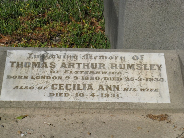 | photo | Rumsley | Thomas Arthur | 09.09.1850 | 25.03.1930 | 79 yrs. | |