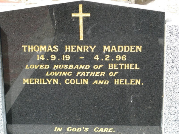 | photo | Madden | Thomas Henry | 14.09.1919 | 04.02.1996 | ||