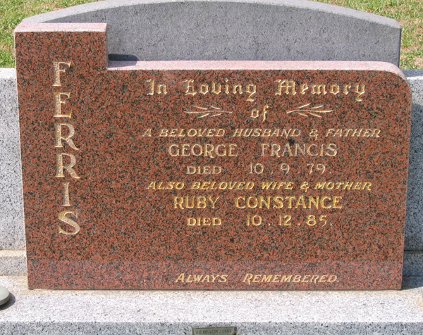 | FERRIS | Ruby Constance | photo | 10/12/1985 | George F | ||||