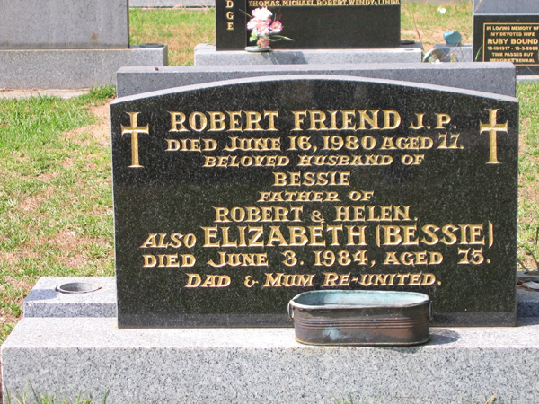 | FRIEND | Robert | photo | 16/6/1980 | 77 | Elizabeth | f/o Robert & Helen | ||