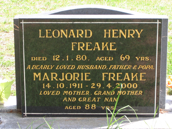 | FREAKE | Marjorie | photo | 14/10/1911 | 29/4/2000 | 88 | Leonard H | ||