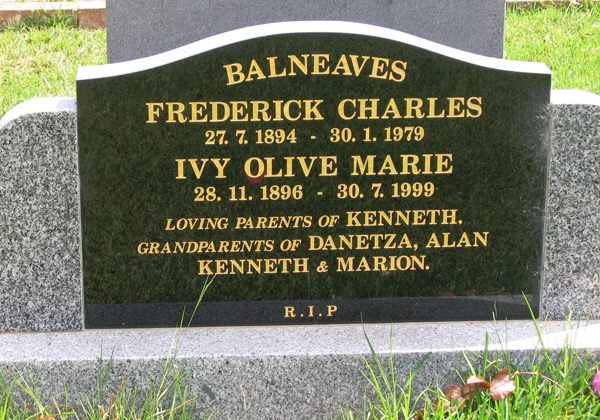 | FRANZ | Lillian Gladys | photo | 26/12/1897 | 7/1/2000 | 102 | Fred (dec) | m/o John, James (dec), Victor (dec), Raymond, (dec) | |