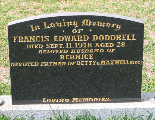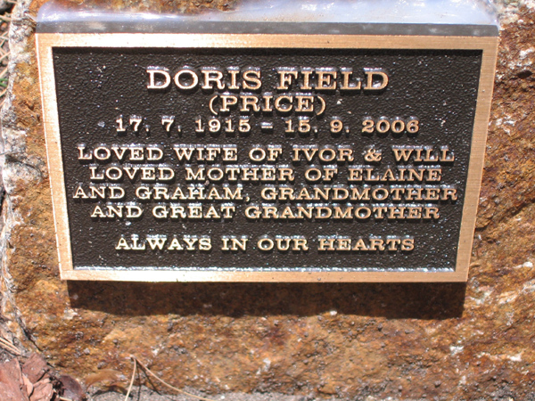 | FIELD | Doris | photo | 17/7/1915 | 15/9/2006 | Ivor & Will | nee Price,m/o Elaine & Graham | ||