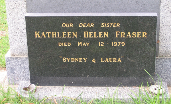 | FRASER | Kathleen Helen | photo | 12/5/1979 | sis to Sydney & Laura | ||||