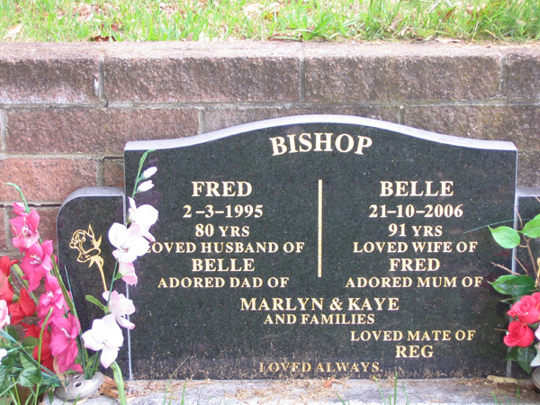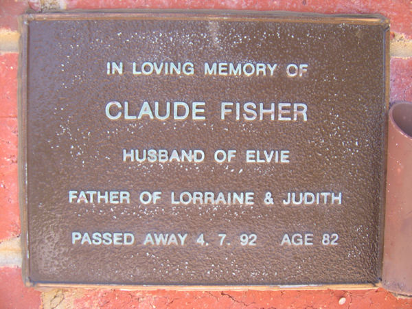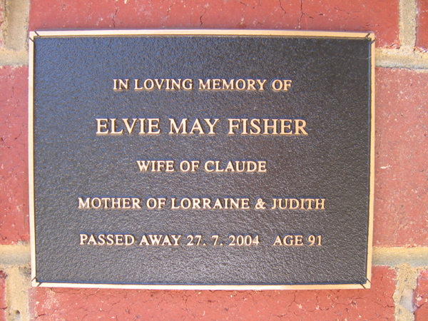 | FISHER | Elivie May | photo | 27/7/2004 | 91 | Claude | m/o Lorraine & Judith | ||