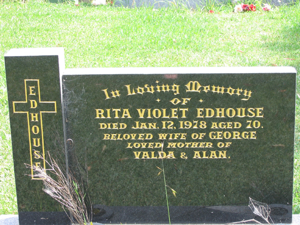 | FIELD | Violet Catherine | photo | 27/01/1913 | 10/1/1998 | 84 | Harold C | m/o Babs (dec), Shirley & Roy | |