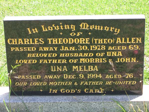 | ALLAN | Charles Theodore (Theo) | photo | 30/1/1978 | 69 | Una M | f/o Morris & John | ||