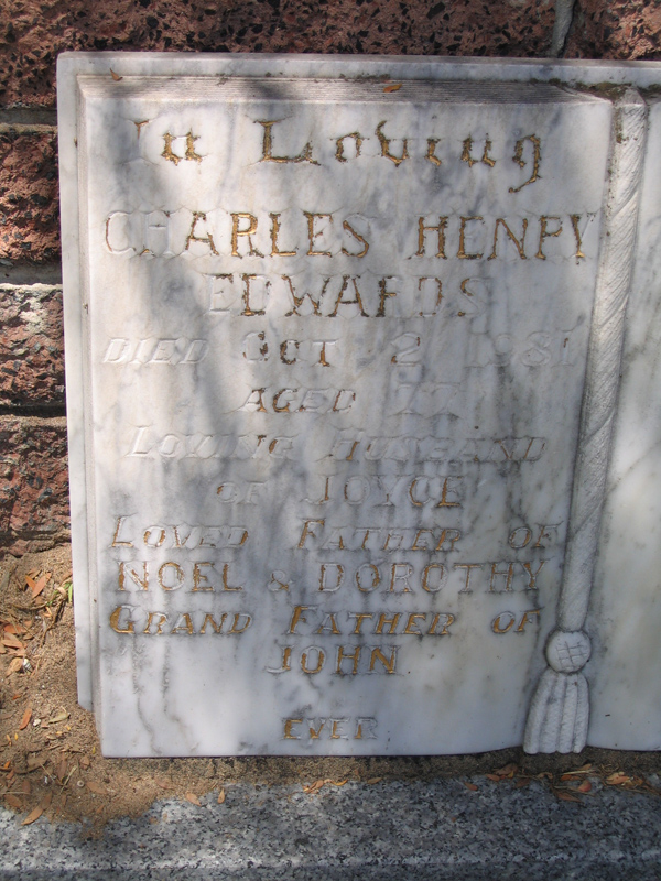 | FIELD | Harold Charles | photo | 31/08/1912 | 25/5/1991 | 78 | Violet C | f/o Babs (dec), Shirley & Roy | |