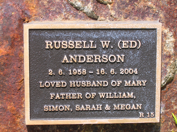 | ANDERSON | Russell W | photo | 2/6/1958 | 16/6/2004 | Mary | f/o William,Simon,Sarah & Megan | ||