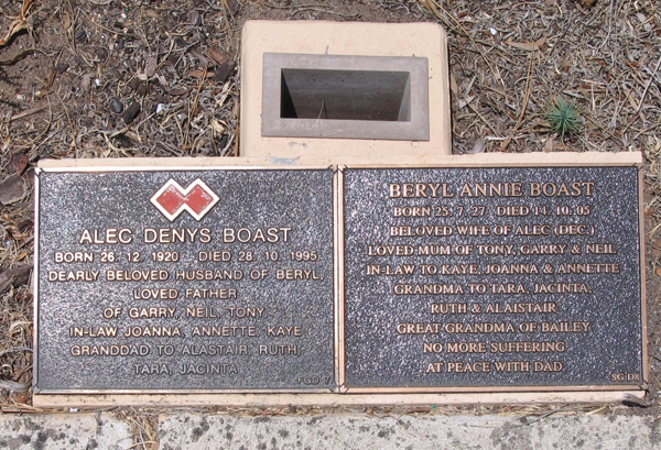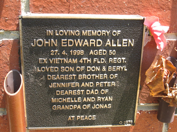 | ALLAN | John Edward | photo | 27/4/1998 | 50 | next to par Donald & Beryl,bro to Jennifer & peter | |||