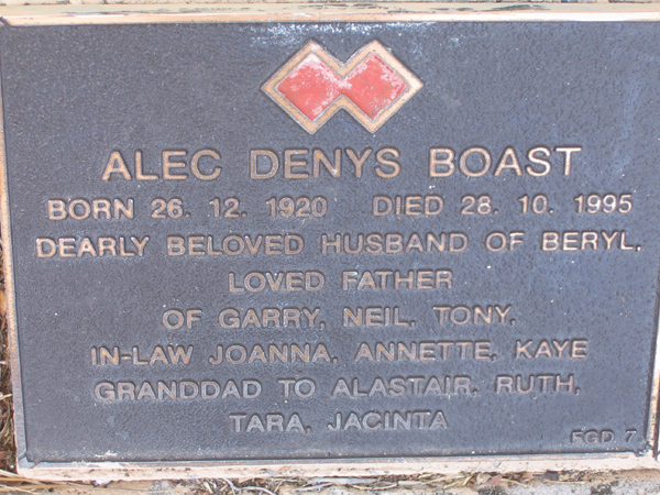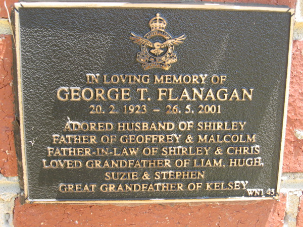| FLANAGAN | George T | photo | 20/2/1923 | 26/5/2001 | Shirley M | f/o Geoffrey & Malcolm | ||