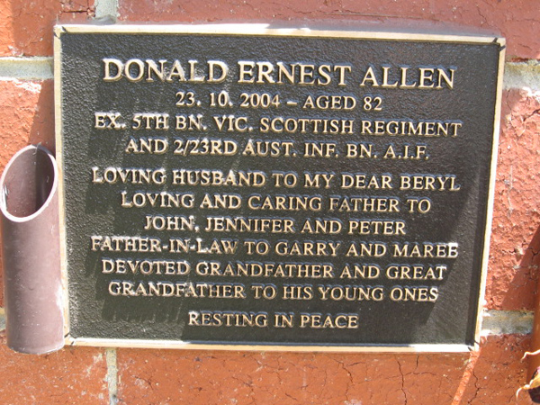 | ALLAN | Donald Ernest | photo | 23/10/2004 | 82 | Beryl M. | f/o John,Jennifer & Peter, | ||