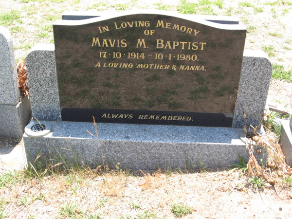 | ANGWIN | Itha Everlyn May | photo | 17/2/1905 | 29/4/1994 | Benjamin J | m/o Rodney,Elaine,Beverley & kent | ||