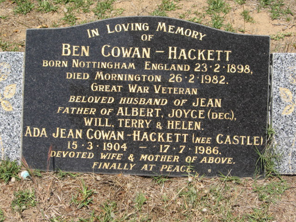 | ASHDOWN | J R H (Ron) | photo | photo | 4/06/1912 | 3/5/1996 | 83 | Betty | Army VX 129217 f/o John, Ron & Jenny. |