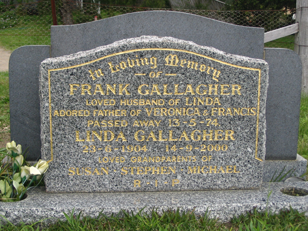 | FIELDING | Noelene Ethel | photo | 18/12/1933 | 26/11/2002 | 68 | Rex | m/o Joseph, Clare, mark,Anthony, Paul, Michael, Kevin, Pat & Peter | |