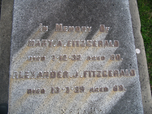 | FITZGERALD | Alexander J. | photo | 13/7/1939 | 89 | Mary A | |||