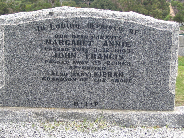 | FAIRMAN | Matthew Thomas | photo | 7/01/1907 | 31/8/1990 | 83 | b/o Lizzie, George, Julia, May, Arthur, Tillie & David- Born County Donegal, Ireland | ||