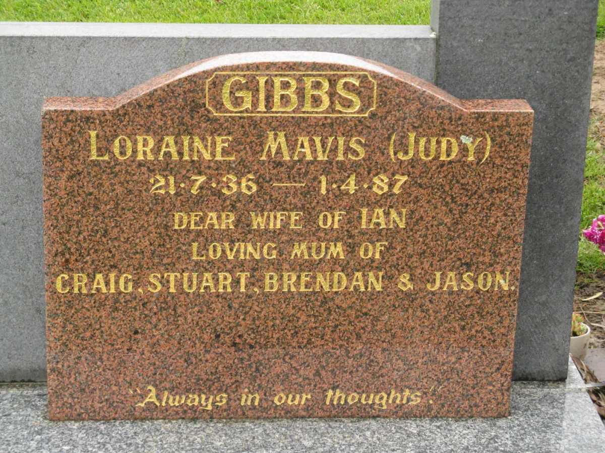 photo | Gibbs | Loraine Mavis "Judy" | 1936 | 1987 | Bm35-10 | ||