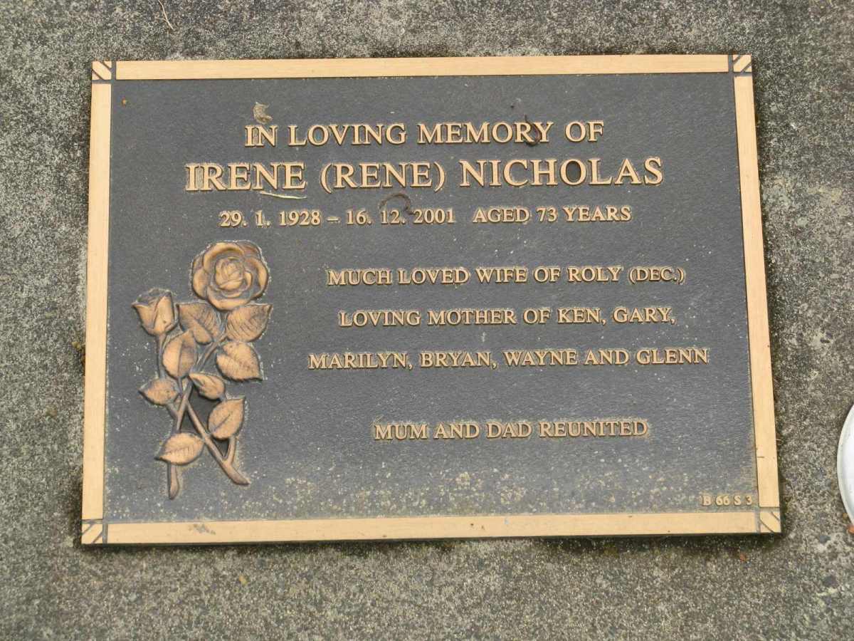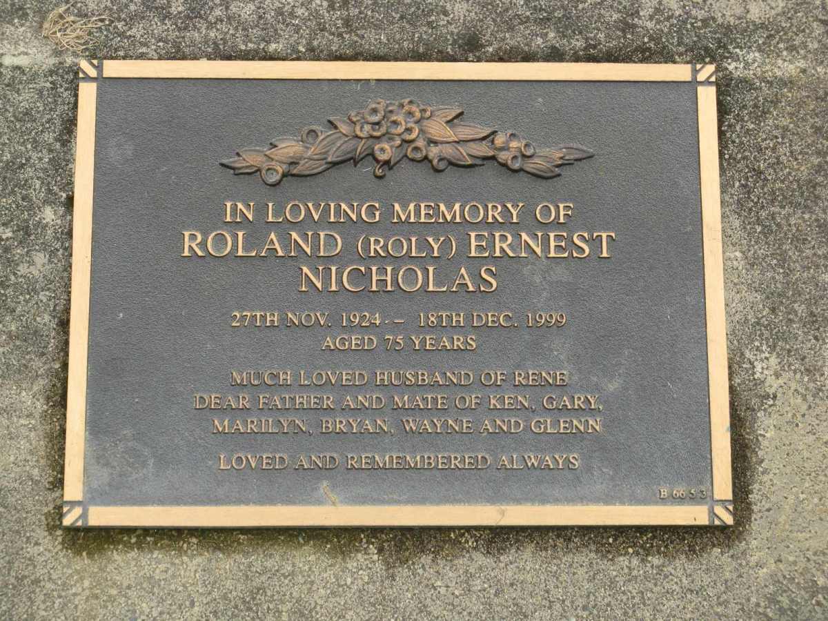 photo | Nicholas | Roland Ernest "Roly" | 1924 | 1999 | 75y | Bm66-03 | |
