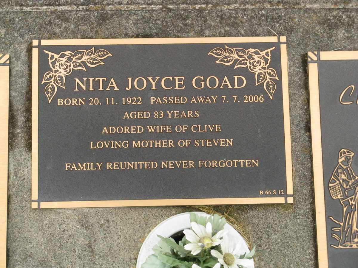photo | Goad | Nita Joyce | 1922 | 2006 | 83y | Bm66-12 | |