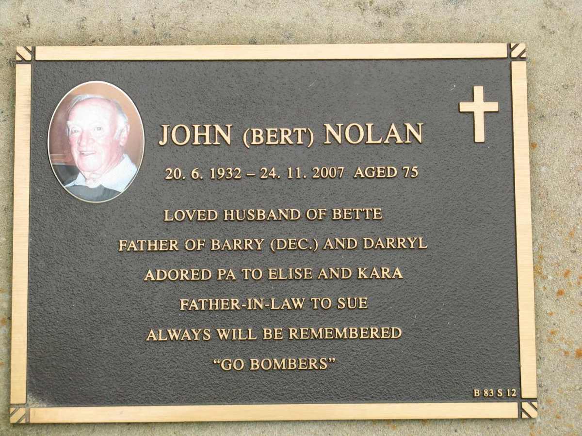 photo | Nolan | John "Bert" | 1932 | 2007 | 75y | Bm83-12 | |