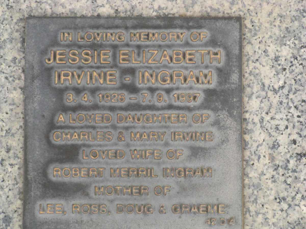 | Ingram | Jessie Elizabeth (-Irvine) | photo | 1926 | 1997 | 4.D | |