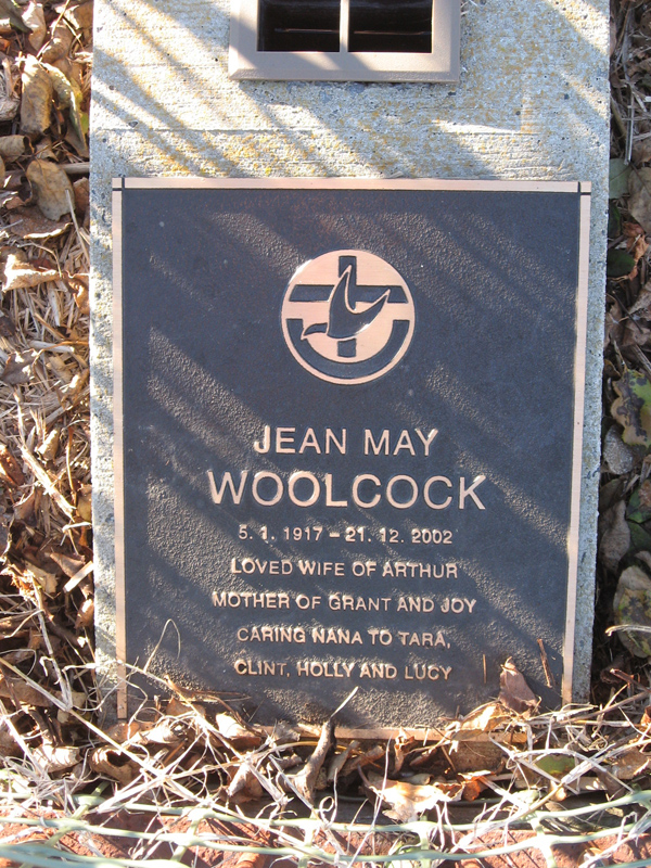 | WOOLCOCK | Arthur Frederick | photo | 1916 | 1994 | Jean M | Lawn A | ||