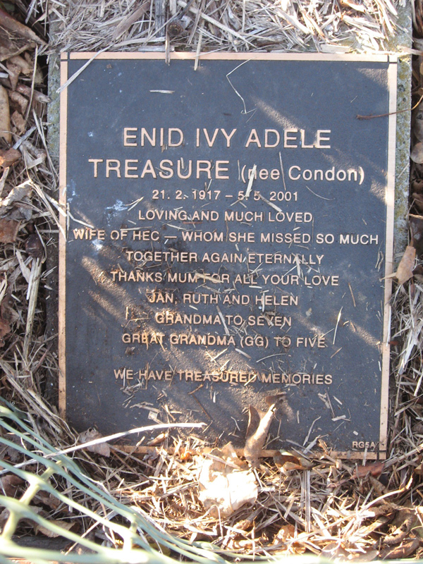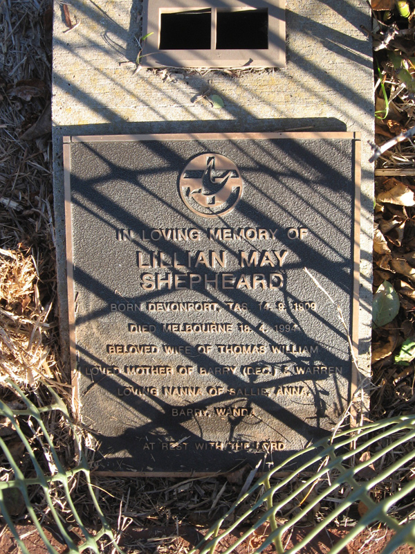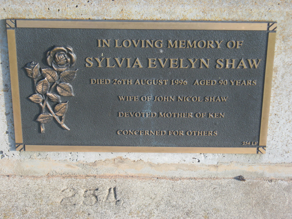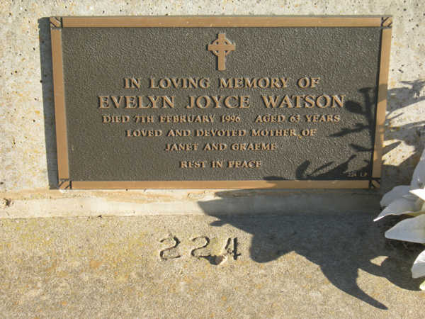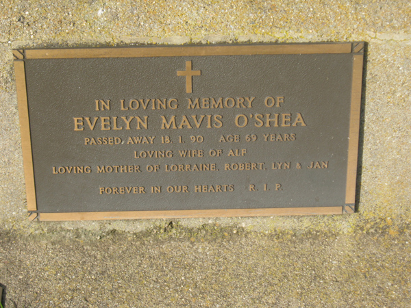 | O'SHEA | Evelyn Mavis | photo | 1990 | 69 | Alfred | Lawn D | ||